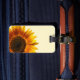 An autumn sunflower with streaks of red in the yellow petals. Sunflowers symbolize longevity, loyalty and adoration. They are considered the happiness flower, and thought to bring joy. This luggage tag is fully customizable and ready to be personalized.