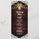 Sunflower Mason Jar Wood Lace Wedding Menu Cards - feature a deep red barn wood background trimmed with lace and decorated with warm colored string twinkle lights. The design also features a bouquet of sunflowers inside a mason jar that you can customize the initials to those of your choice. The back also features the same country rustic background to match the front.