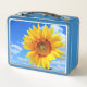 Metal Lunch Box with Yellow Sunflower and Bees on Blue Sky - Customizable - or Choose / Add Your Unique Photo - Image / Text - Name - Make Your Special Metal Lunch Boxes Gifts - Resize and move or remove and add image / text with Customization tool. Design by MIGNED. Please see my other projects / designs and paintings. You can also transfer my designs to more than 1000 Zazzle products.