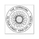 Return address rubber stamp with a drawing of a beautiful sunflower in the center and your name and address in a modern sans-serif font.