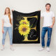 Sunflower Monogram Letter E Floral Letter E Gift Fleece Blanket