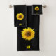 Beautiful sunflower and monogram on black Bath Towel Set. Elegant simple design for singles and couples!