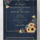 Sunflower Navy Blue Burgundy Wood Floral No Menu All In One Invitation
