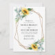 sunflower navy blue floral geometric wedding invitation