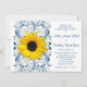 Sunflower Navy Blue Floral Wedding Invitation