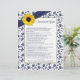 You can personalize the name on this yellow sunflower, navy blue and white floral and ribbon personalized bridal shower newlywed game. You can change the text using the personalize options. The colors on this sunflower flower bridal shower game are yellow, navy blue and white... perfect for a spring, summer, or fall / autumn wedding shower.