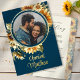 Sunflower Navy Blue Photo Wedding Gold Foil Invitation