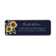 Rustic watercolor sunflower and eucalyptus arrangement, navy blue return address label.