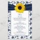 Sunflower Navy Blue White Damask Wedding Menu Card