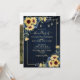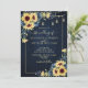 Sunflower Navy Blue Wood Floral Photo Wedding Invitation