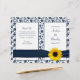 The text on this sunflower navy or marine blue and white damask wedding program is fully customizable. The program itself is intended to be folded down the middle when you receive it. You can change the text using the personalize option. For more extensive changes to the program, including changing the background color, font, font color, font size, or text placement, choose the "customize it" option. This is a great wedding program for a summer or fall wedding with a sunflower theme. The colors are bright yellow, navy or marine blue, and white. Elegant and cheerful. This program is currently customized for a wedding, but would also work great for an anniversary party program (renewal of vows perhaps) or a church bulletin. All you need to do is change the wording. NOTE: This invitation is a flat design without any 3D embellishments.