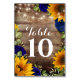 Sunflower Navy Roses Rustic Wedding Table Numbers