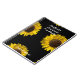 Sunflowers arranged on a black background.