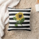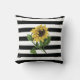 Sunflower on Black and White Stripes Throw Pillow