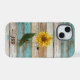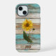 Sunflower on Faux Green Weathered Wood Initials iPhone 15 Case