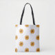 Do you like cute tote bags? This tote bag has a pattern of yellow hand drawn flowers done in marker.