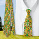 A farm themed, Spring green tie with a pattern of sunflowers, lambs and goats. Colors are yellow, brown and tan on a bright green background. The unique unisex design is perfect for events attended by farmers and homesteaders. This design is perfect for tie-wearing women as well.