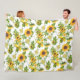 Bright gold sunflower images make a beautiful collage pattern on this fleece blanket. The sunflower images are surrounded by green leaves and curly stems, and placed on a white background. This is a sunny, happy addition to any bedroom! Be sure to see the matching products in our store. *Images included in this design are by LeCoq Designs.