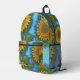 Go back to school in style with this pretty sunflower print backpack. Pretty floral backpack features big yellow sunflowers and green leaves against a blue background. Original colored pencil artwork by The Gifted Grackle.. Original colored pencil artwork by The Gifted Grackle.