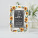 The perfect rustic country Save The Dates for the fall season! Weathered barn wood and chalkboard are accented by festive sunflowers and harvest pumpkins in watercolor styling. Unique specialty wedding theme for October and November mailings.