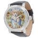 Watercolor Sunflower Puppy, this design features a cute and adorable Puppy in a Bucket with Sunflowers done in watercolor.