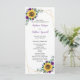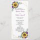 These wedding programs feature a modern watercolor floral design with sunflowers, purple roses and faux gold geometric border. The front of the card has the ceremony and the back of the card lists the bridal party. These wedding programs are part of a collection which includes a range of matching wedding stationery such as wedding invitations, reply cards, enclosure cards, address labels, stickers and much more. Please visit our store to see the full range.
