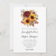Invite your guests to your fall wedding inspired by sunflowers and red roses with our wedding invitations featuring a bouquet of sunflowers, red roses and greenery.