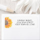 return address label is decorated with a yellow watercolor sunflower and modern typography.