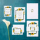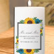 Design features elegant sunflowers, roses, and daisies with a golden yellow, teal and white color palette. Design also features a charcoal gray frame. You can change the background color on the front and back to the color of your choice or leave both set to white.