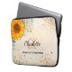 A golden watercolored background. Decorated with a watercolored sunflower, eucalyptus greenery and golden sprigs. Personalize and add your first name, monogram initials and full name. The name is written with a hand lettered style script.