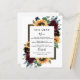 Design features elegant watercolor roses, peonies, wildflowers and sunflowers in various shades of burgundy red, navy blue and more over a wreath of eucalyptus greenery. Design also features a barn wood frame underneath the wreath. A unique font layout compliments the overall design. You can change the background color on the front and back to the color of your choice or leave both set to white. View the collection on this page to find matching wedding stationery products.