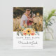 The rustic boho charm of sunflowers and terracotta roses on this Save the Date Card will create a lasting impression for your upcoming wedding while reminding your guests to mark the big day on their calendar. Celebrate your special day with beautiful sunflowers and burnt orange rustic roses. The delicate eucalyptus greenery creates a country garden feel that will give your guests a memorable first impression for your romantic occasion. The elegant charm of sunflowers and roses will let your guests know they're in for a magical event. Personalize with your favorite photo.