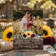 This rustic sunflower and burgundy roses country wedding Save the Date is perfect way to announce your upcoming wedding to your friends. This save the date features watercolor yellow sunflowers with burgundy roses and baby's breath and sage greenery paired with rustic plank barn wood. This is a perfect color scheme for a late summer or fall wedding Make this wedding announcement your own by including your names, photo and wedding details. For further customization, please click the "customize further" link and use the advanced design tool to modify this template.