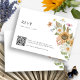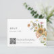 Sunflower RSVP QR Code. This stylish wedding RSVP card features stunning hand-painted watercolor pink and dusty blue wildflowers, beautiful yellow sunflowers, and sage greenery arranged as a lovely wreath that's perfect for those who love whimsical boho / bohemian elegance. Find matching items in the Modern Sunflower Wedding Collection.