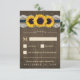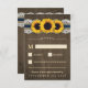Sunflower Rustic Blue Burlap Wedding RSVP Cards - features a barn wood background with sunflowers, lace, burlap and a printed navy blue ribbon. See the entire matching collection on this page.