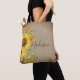 Sunflower Rustic Country Burlap Personalized Name Tote Bag . This design features beautiful watercolor painted sunflowers on a faux burlap texture background. Personalize this custom design with your own name or text.