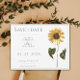 Announce your wedding day with this Sunflower Save the Date Announcement. Save the Date design features a watercolor sunflower and modern text design. Add a photos and wedding details to customize.