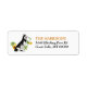 The left side of these return address labels feature an image of a beautiful Siberian Husky dog among scattered sunflowers. Your custom text is in gold and black at the right.