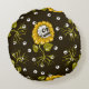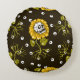 Sunflower Skulls: Unique Seamless Pattern. Round Pillow