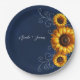 Sunflower Sparkle Blue Rustic Glam Bridal Shower Paper Plates