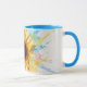 This floral mug features my original photograph of a sunflower. I processed my photograph with a watercolor painterly style and colorful splash for an artsy flair. The handle and inside of the cup are aqua blue to complement the artwork.