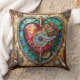 Sunflower Stained Glass Heart Steampunk Series Throw Pillow