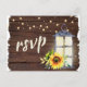 Sunflower String Light Lantern Rustic Wood RSVP Invitation Postcard