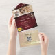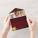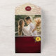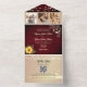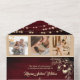 Celebrate your love amidst rustic charm with our botanical-inspired all-in-one wedding invitation! Crafted on rustic burgundy wood, this design exudes warmth and elegance. Adorned with whimsical string lights and vintage boho gold floral lace accents, it sets the perfect tone for your special day. Personalize it with four cherished photos of the happy couple, beautifully capturing your journey together. Simplify RSVPs and share additional information effortlessly with our included website and QR code. Let your love story unfold with this enchanting blend of botanical beauty and rustic allure.