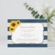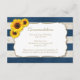 Summer wedding accommodations card with sunflowers and navy blue stripes. Great for rustic country barn weddings or other vintage style events.