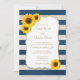 Sunflower Stripes Rustic Navy Blue Wedding Invitation