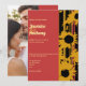 This modern photo wedding invitation combines clean design with warm, summer-inspired details. Your engagement or pre-wedding photo is paired with bold sunflower silhouettes, warm coral tones, and golden yellow stripes that bring a relaxed yet elegant feel to the design.