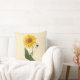 Rich golden botanical sunflower on a tan fabric accent or throw pillow.