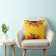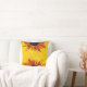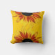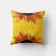 This brilliantly colored decorative throw pillow features two beautiful orange, yellow and gold sunflowers wide open against a golden yellow background. The image is repeated on the back.