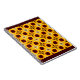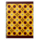 Do you like kaleidoscopes, mosaics, tiles, and sunflowers? This fresh-from-the-garden notebook features a sunflower image that's been spun into an abstract geometric pattern that's unique and colorful. Take a little bit of summer with you, wherever you go whether it's for school, for work, for poetry, or your next novel. The top and bottom of the cover have some brown trim, and the rest is a repeating pattern.
